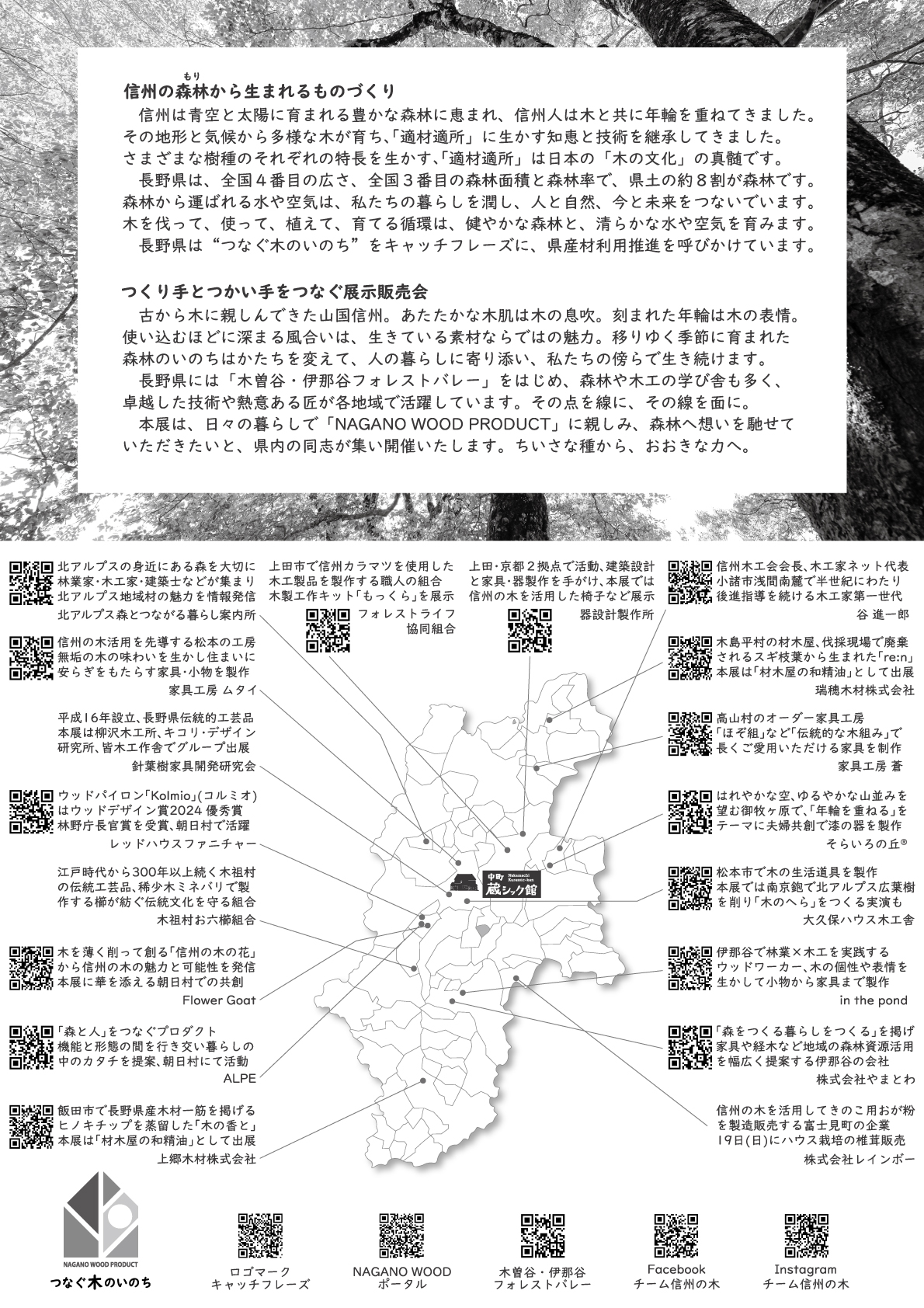 昨年度の「信州の広葉樹材活用講習会」に続き、今年度は展示販売会を開催いたします。